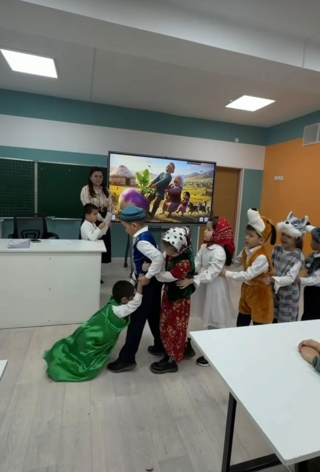Бөбекжай мен мектеп арасындағы сабақтастық жоспарына сәйкес бастауыш сынып оқушыларының шығармашылық қабілеттерін дамыту, сахналық мәдениетін қалыптастыру және мектеп пен бөбекжай арасындағы сабақтастықты нығайту мақсатында 1-сынып оқушылары бөбекжай тәрбиеленушілеріне ертегі қойылымын ұсынды.
