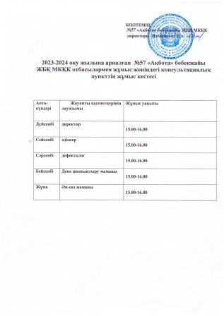 Консультациялық пункттің жұмыс жоспары мен кестесі