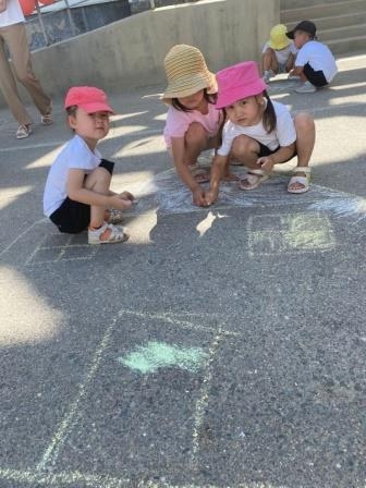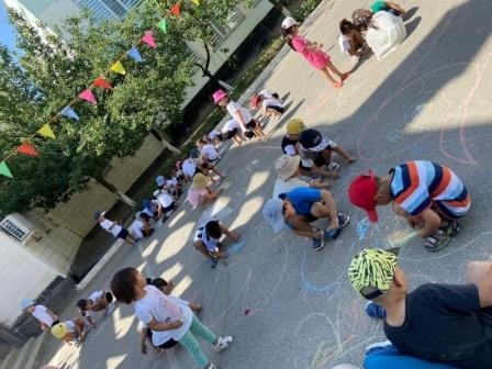 05.07.2024 жылы «Алақай, жайдарлы жаз келді» жазғы сауықтыру жоспарының «Гулденген табиғат» апталығы бойынша «Астана сүйікті қалам» тақырыбындағы шарасына сәйкес,«Бұл бақытты мекен» тақырыбына асфальтқа сурет салды.