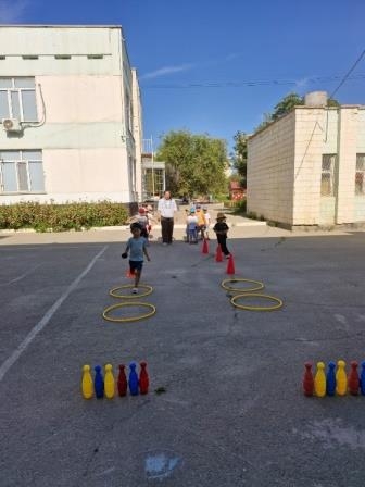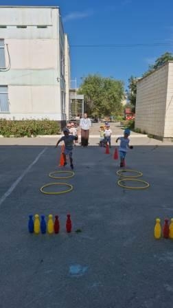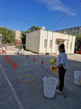 18.07.2024 жылы «Алақай, жайдарлы жаз келді» жазғы сауықтыру жоспарының «Жазғы сайыстар» апталығы бойынша «Менің көңілді добым» тақырыбындағы шарасына сәйкес, «Допты нысанаға лақтыру» доппен ойын.