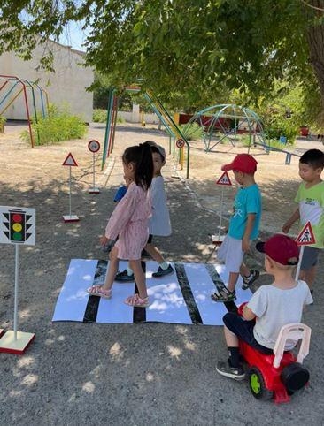 24.06.2024 жылы «Алақай, жайдарлы жаз келді» жазғы сауықтыру жоспарының «Қауіпсіз жаз» апталығы бойынша, ойын сауық «Бағдаршам күні» тақырыбындағы шарасына сәйкес, №6 «Айгөлек» ересектер тобы «Дымбілместің қала көшелеріндегі оқиғалары» атты «Көше қозғалысы» ойынын ұйымдастырды.