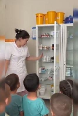 Мақсаты: балаларды гигиеналық машықтарды сақтау арқылы күнделікті таза ұқыпты жүруге тәрбиелеу. Медбикенің кабинетімен, ондағы қажетті құралдармен таныстыра отырып, олардың танымдық қабілеттерін арттыру.