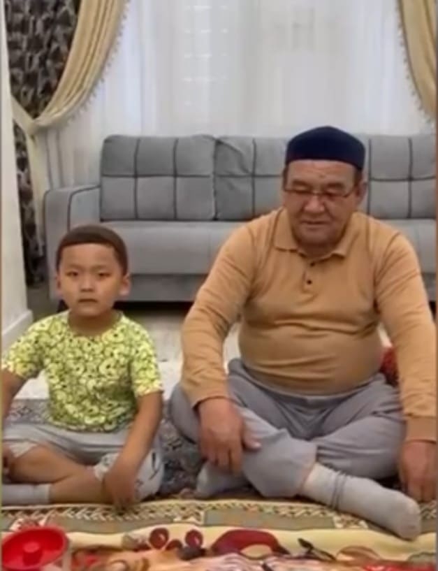 №11 "Көгершін" мектепалды тобының тәрбиеленушісі Шамшадин Амин атасынан бата алуда