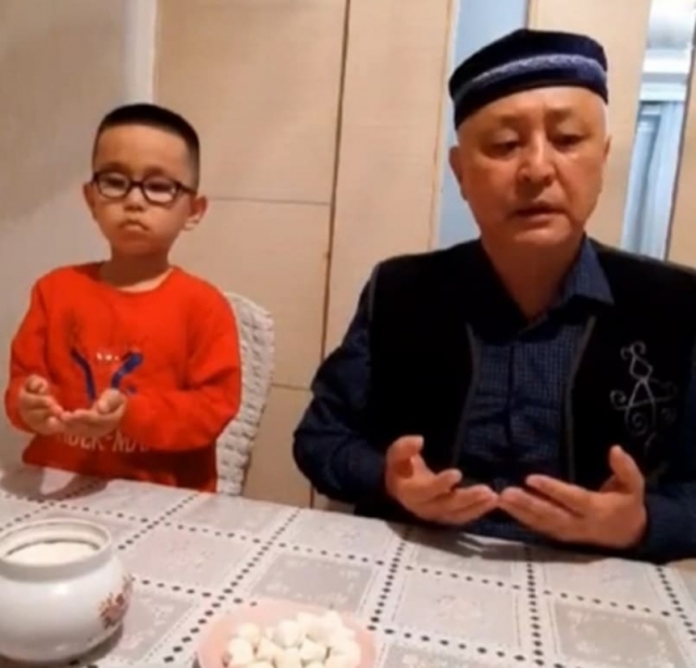 №11 "Көгершін" мектепалды тобының тәрбиеленушісі Шамшадин Амин атасынан бата алуда
